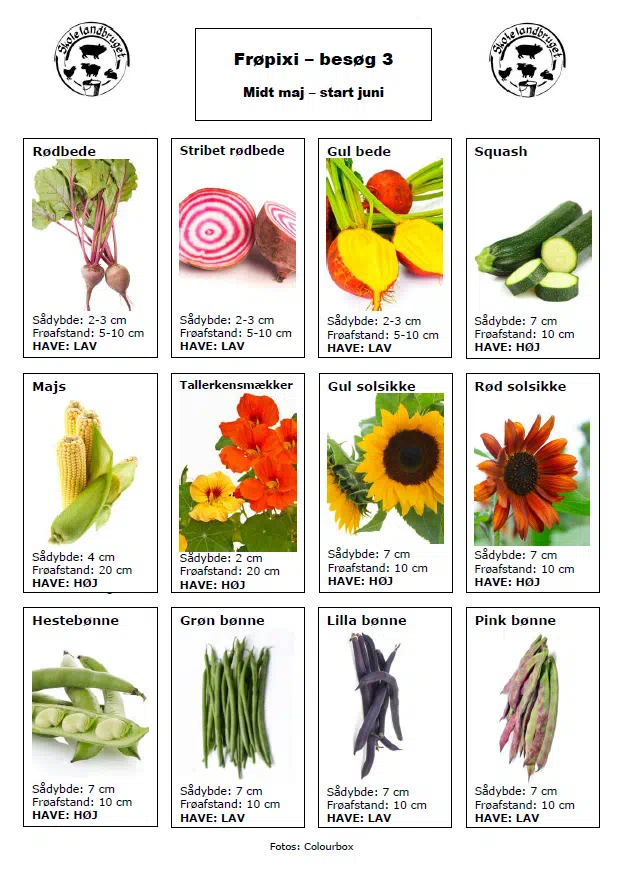 For at finde så-dybder på andre afgrøder, se da dokumentet "Frøoversigt - såtidspunkt, -dybde, -afstand og høst".