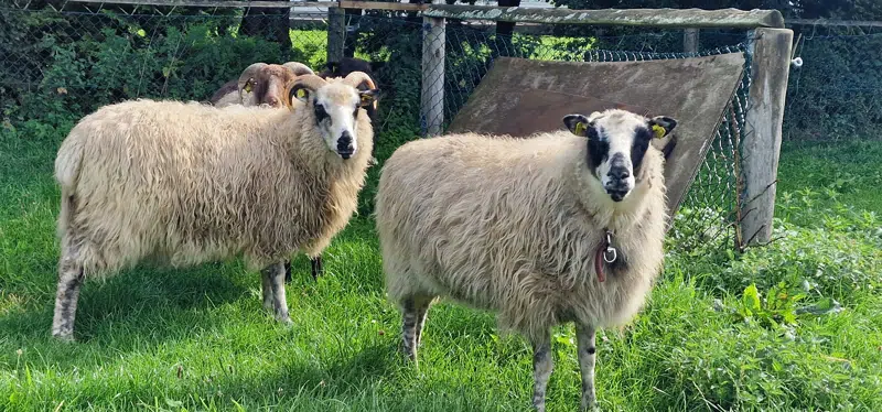 Fårene er af racen 'Islandske får'. Deres kraftige pels bliver klippet én gang om året, og om foråret får hvert af de tre får 1-2 lam.