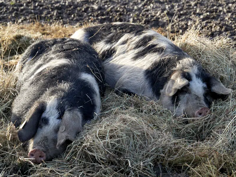 På gården har vi 'Dansk Sortbroget Dansk Landrace'. Landracen har vi altid 1-2 søer af og nogle gange også en orne. Søerne får på skift et kuld unger, der, når de er gamle nok, bliver slagtet og solgt som flæskestege og andet godt kød.