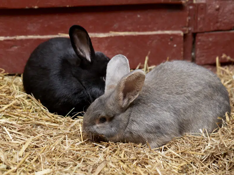 Gårdens kaniner er slagtekaniner. Det vil sige, at de er større end kælekaniner, og bliver opdrættet med henblik på at blive slagtet og spist - ligesom gårdens øvrige landbrugsdyr. Et par gange om året får en af vores hunkaniner unger.